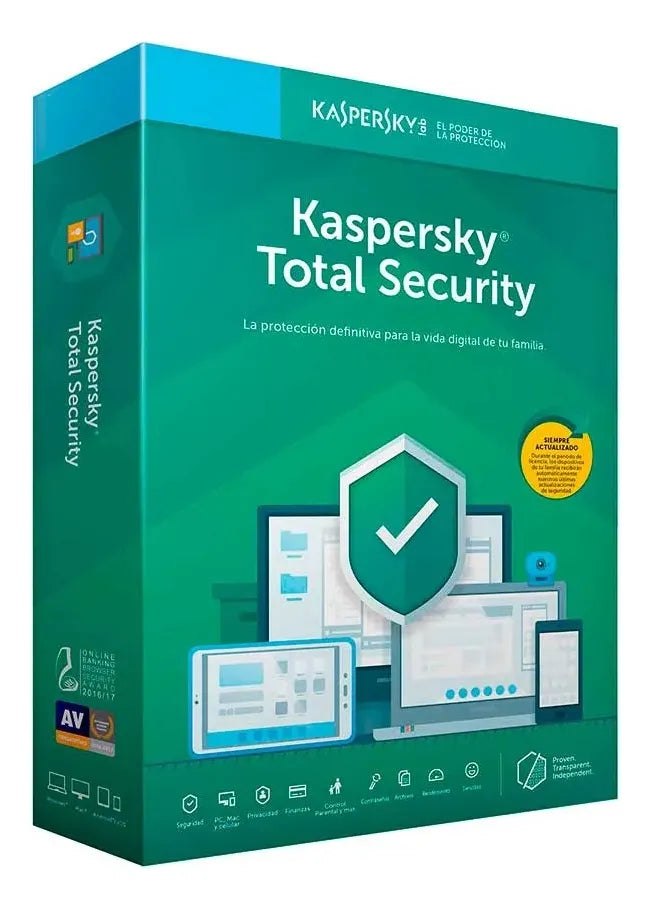 Licencia Kaspersky Total Security: Protección Sin Límites para WINDOWS. Esta licencia es funcional solamente para equipos con sistema operativo Windows.